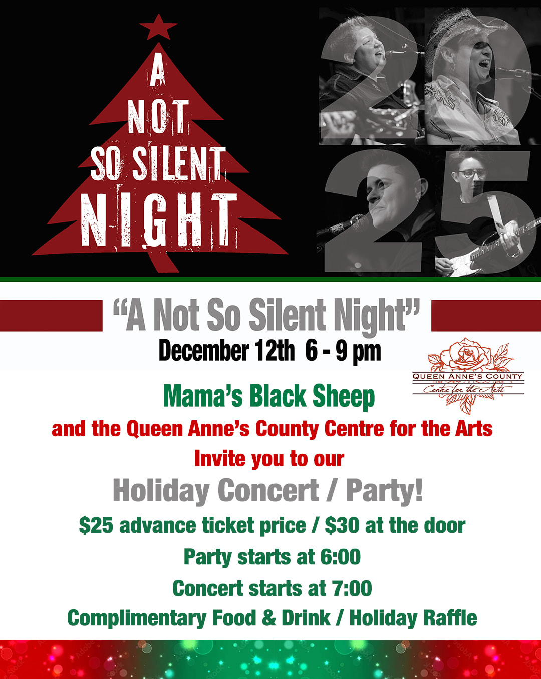 Queen Anne's County Centre for the Arts 206 S. Commerce Street, Centreville, Maryland“A Not So Silent Night” featuring Mama’s Black Sheep, Regina Sayles & Colleen Clark Join us for "A Not-So-Silent Night", a lively Holiday Themed Show with Mama's Black Sheep, Regina Sayles, and Colleen Clark! The artists will be playing original songs along with Holiday Favorites to get you in the spirit of the season. This […]