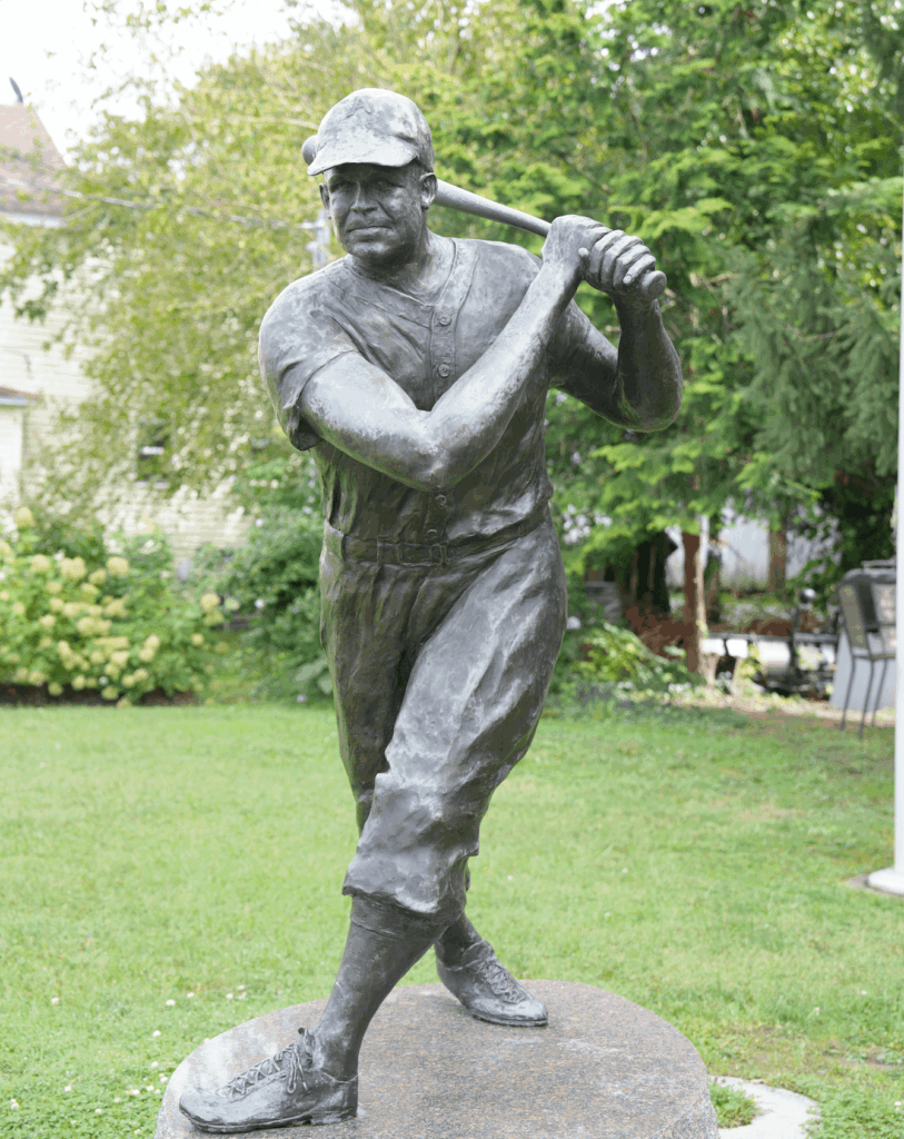 It would be years before the hometown hero began to receive much-deserved posthumous recognition. The Sudlersville Train Station Museum, located at 101 South Linden Street (at the train tracks) pays tribute to Jimmie Foxx, displaying memorabilia. The museum, open the first Saturday of each month May – December 10:00 – 2:00, also celebrates October as Jimmie Foxx Month. The bronze statue of “The Beast,” erected in 1997, stands nearby at the corner of Main and Church Streets.