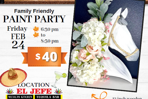 Come join Talisman Therapeutic Riding at El Jefe for a benefit paint night! The event will take place from 6:30-8:30 Friday, February 24, 2023. We...